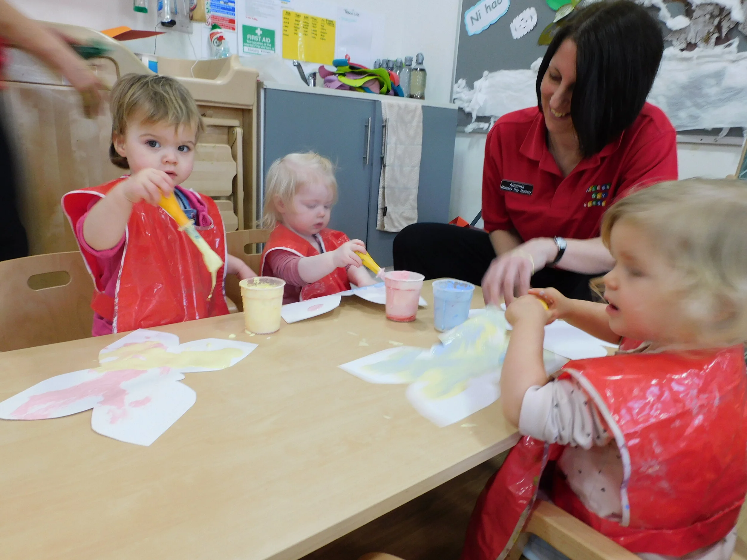 The babies have enjoyed playing with the playdough this week pinching it with their fingers enjoying making marks, Frankie and Ari tried some of the playdough spitting it out when the decided they didn't like the taste! Ari and Wren showed good control when using the rolling pin holding the handles and trying to make a rolling motion. Babies enjoyed making marks on paper using crayons they enjoyed being able to choose what colour they wanted by picking them out of the box. Connie and Harry loved getting messy with the foam, singing songs such as ‘Tiny Tim’ with the staff. They clapped their hands laughing at each other as the foam flew into the air, landing in their hair and all over the floor! Great fun!