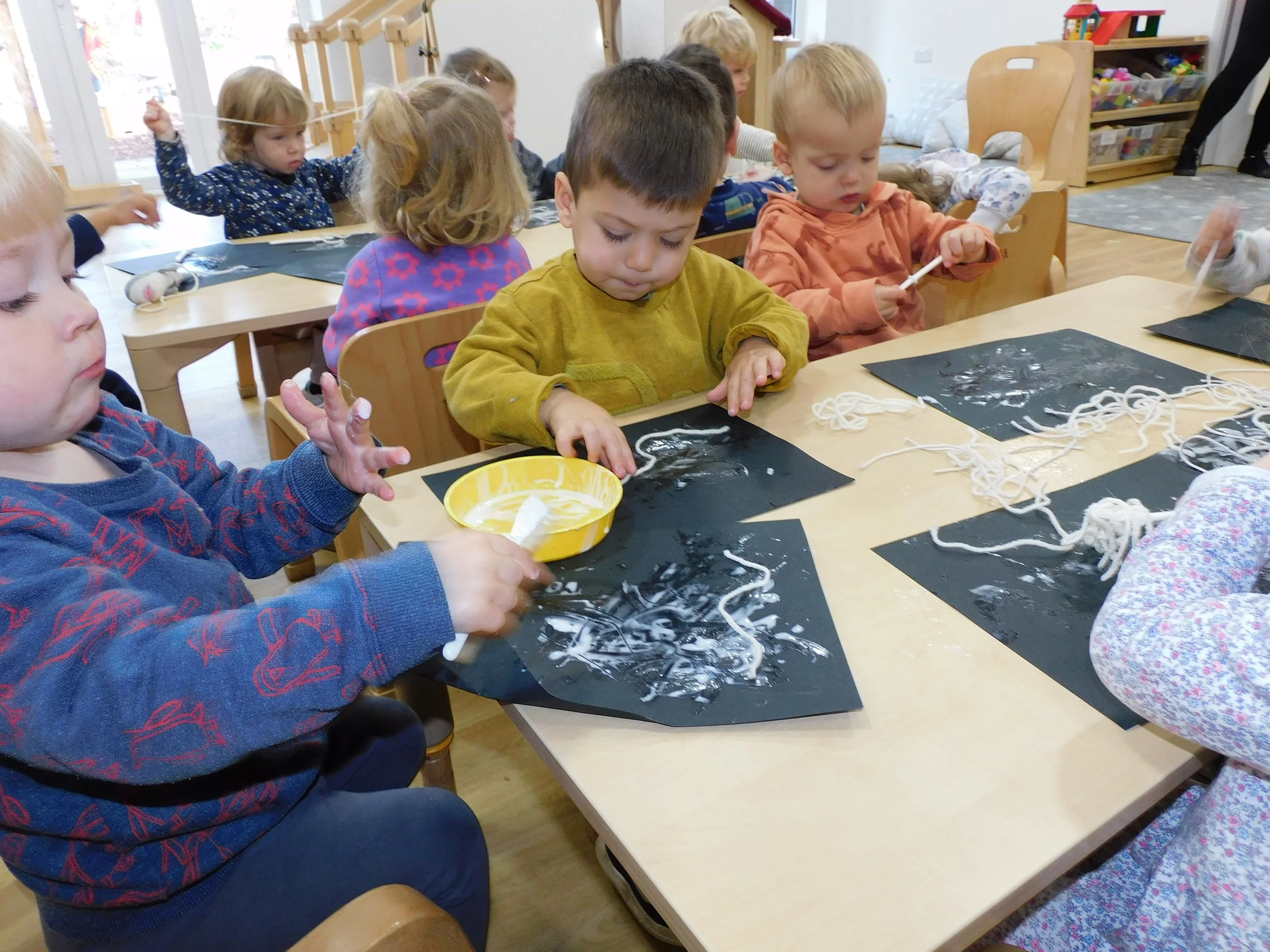 Back inside the toddlers have been hiding in their very own hedgehog den on the climbing frame. Tommy found the animal teddies and buried them under the blankets and said “Fox sleeping, shush!” when any of his friends went passed. To celebrate Diwali the toddlers used paper, dabber pens, feathers and more to create lanterns to take home to their families.