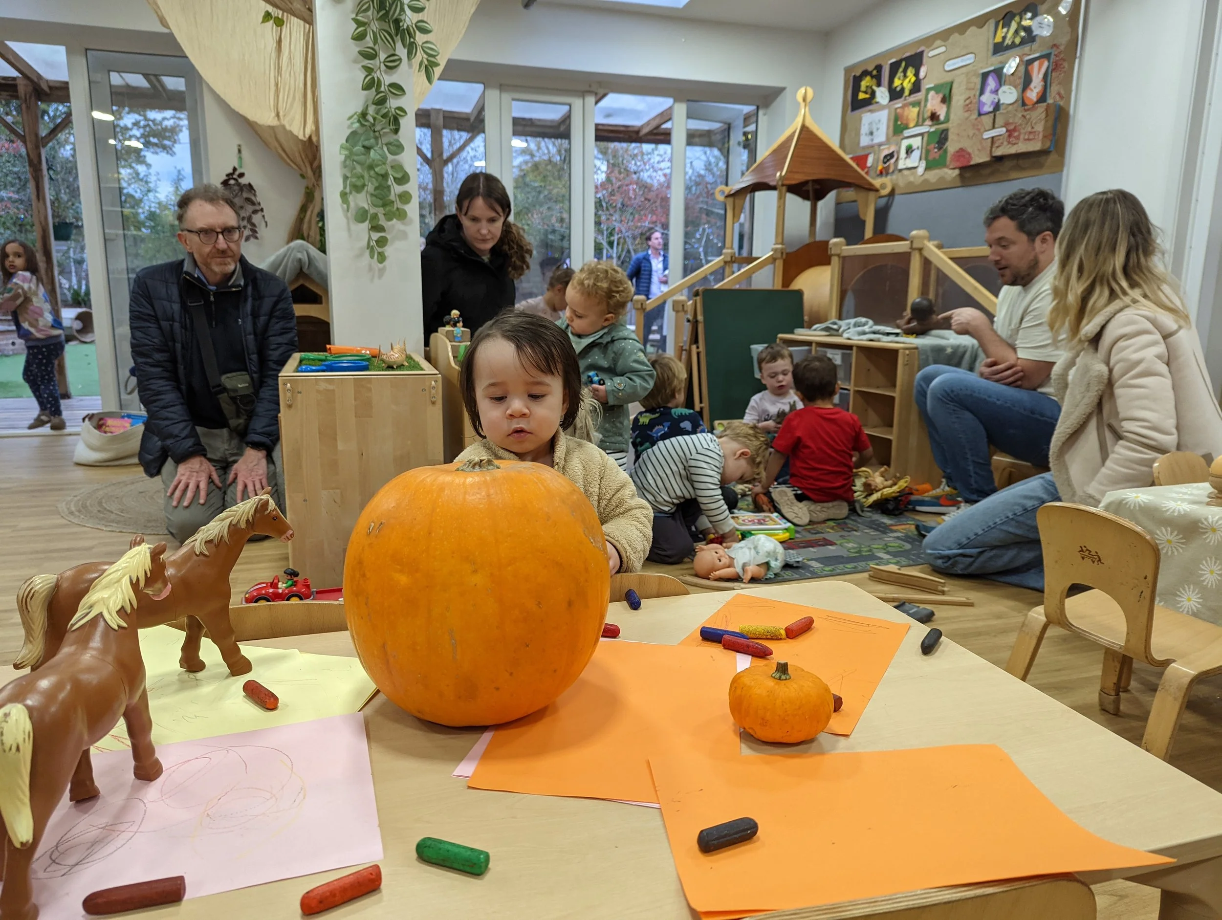 Once families started to arrive, the children were keen to set off to the garden, some children joined in with autumn bingo whilst others enjoyed a football game together including inviting parents to also play. The children also enjoyed showing their families some of the pumpkins that the children had selected at Garsons farm for the autumn social event.
