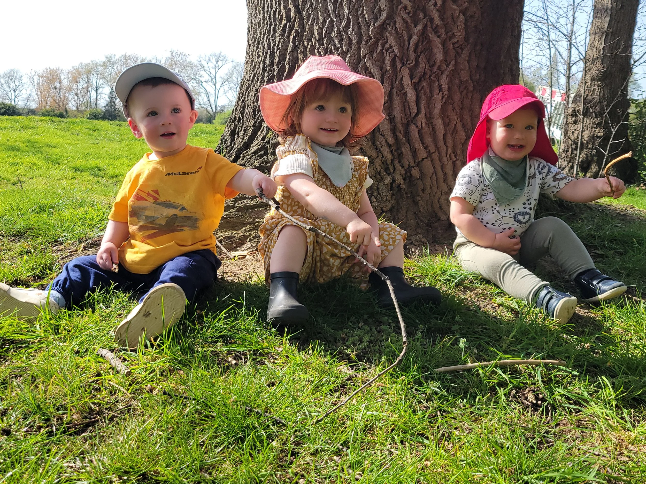 Whilst out on the daily walks, the children have been on the hunt to find some ducks in the river which they can feed. Whilst walking in the buggies, the children excitedly shouted ‘Duck!’, and ‘Quack quack!’ as soon as they spotted a couple of them swimming along. When the ducks came onto the grass, one of the children excitedly exclaimed ‘Hello duck’ whilst waving, which led to a couple more children also waving to the ducks as they approached. Once the children were out of the buggies, they all peered curiously at the ducks, with a couple of them crouching down to inspect them closer. When one of the children shouted ‘Duck’, another turned quickly and let out a quiet ‘Shh’, before a group of them sat down and watched from a slight distance as the ducks tucked into their snacks that the children had thrown them.