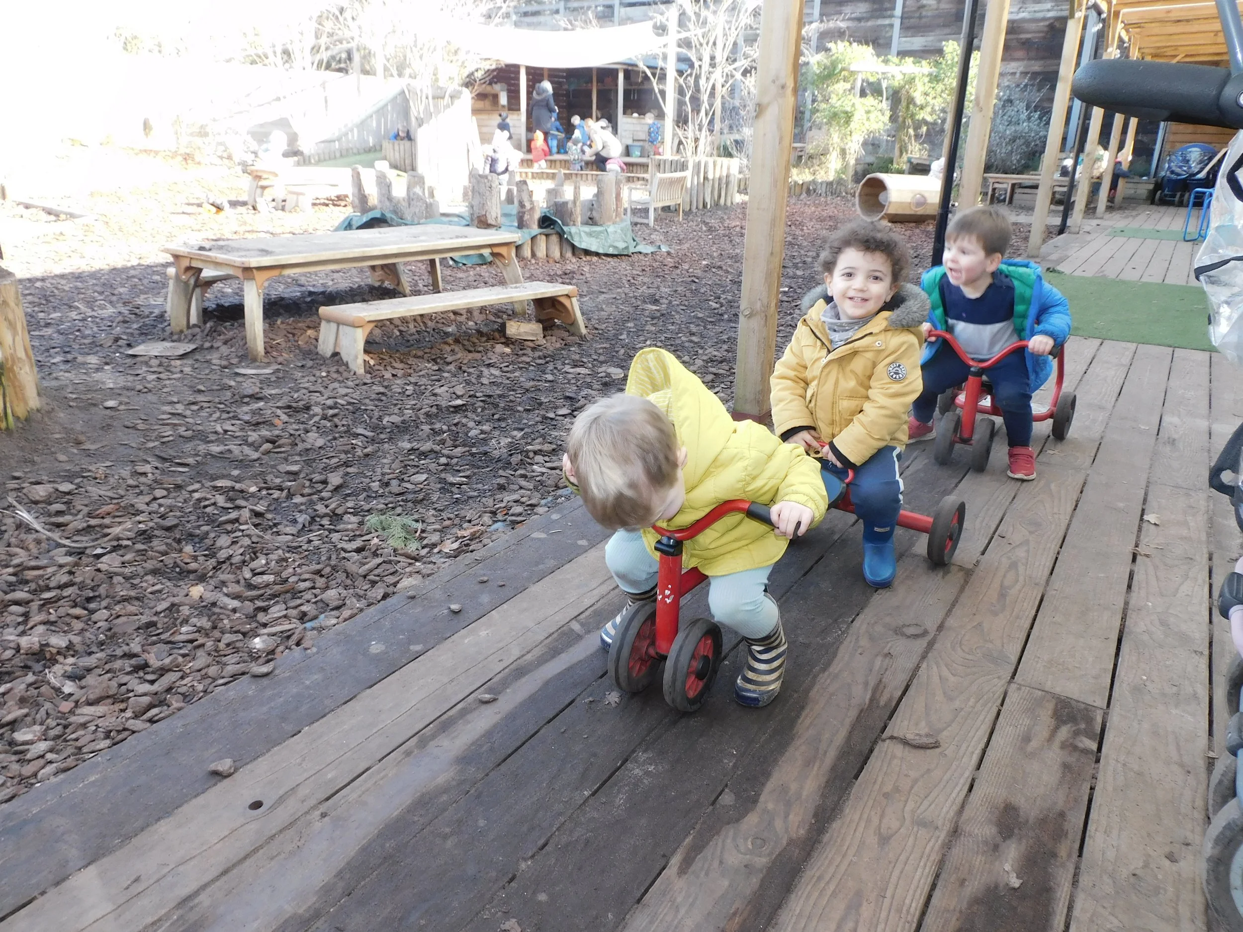 The children then went on to do an observation drawing of various sized shells. Isabelle found the biggest one under the water tray and took it to the table saying, “Wow guys, look at this one, it’s gigantic!”. Sophie was very impressed with the size of the shell, telling Isabelle, “Well done Isabelle, that is a super big shell that we can all draw”. After all the busy creative work, the children moved out to the garden, taking their under the sea imagination out there. Jonny was pretending to be a crab, crawling around the floor, encouraging his friends to join in saying, “It’s fun guys, come on!”, whilst Alba was the jellyfish, wriggling her arms and legs all over the place!